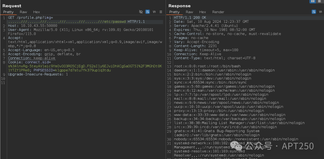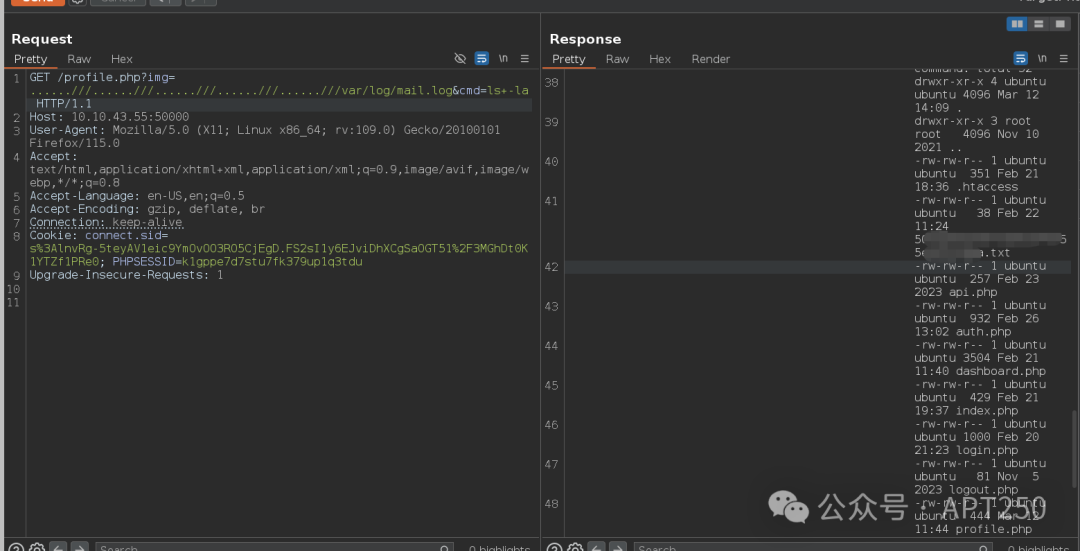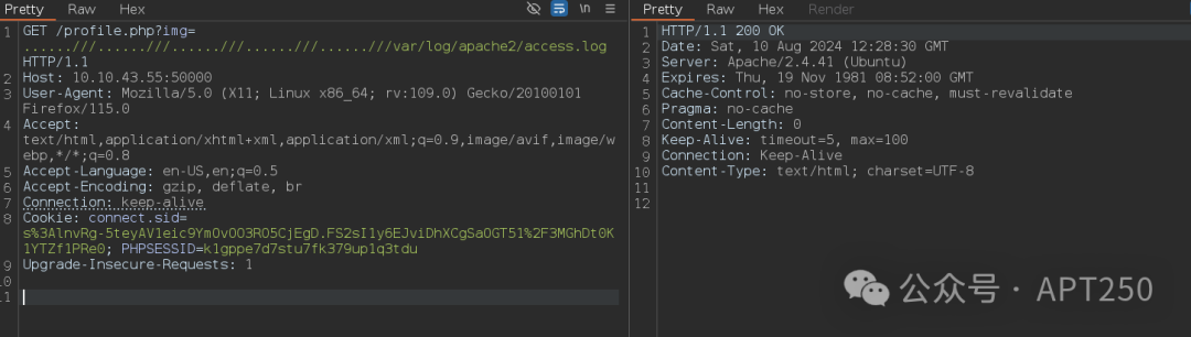 burp logger可以看到profile.png图片是通过文件包含出来的