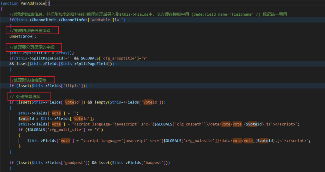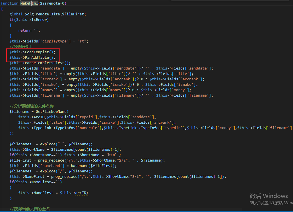 该函数前半部分有面两个重要的函数。$this->LoadTemplet();获取文章的模板$this->ParAddTable();处理文章需要保函的额外功能。例如投票。更进paraddtable()函数