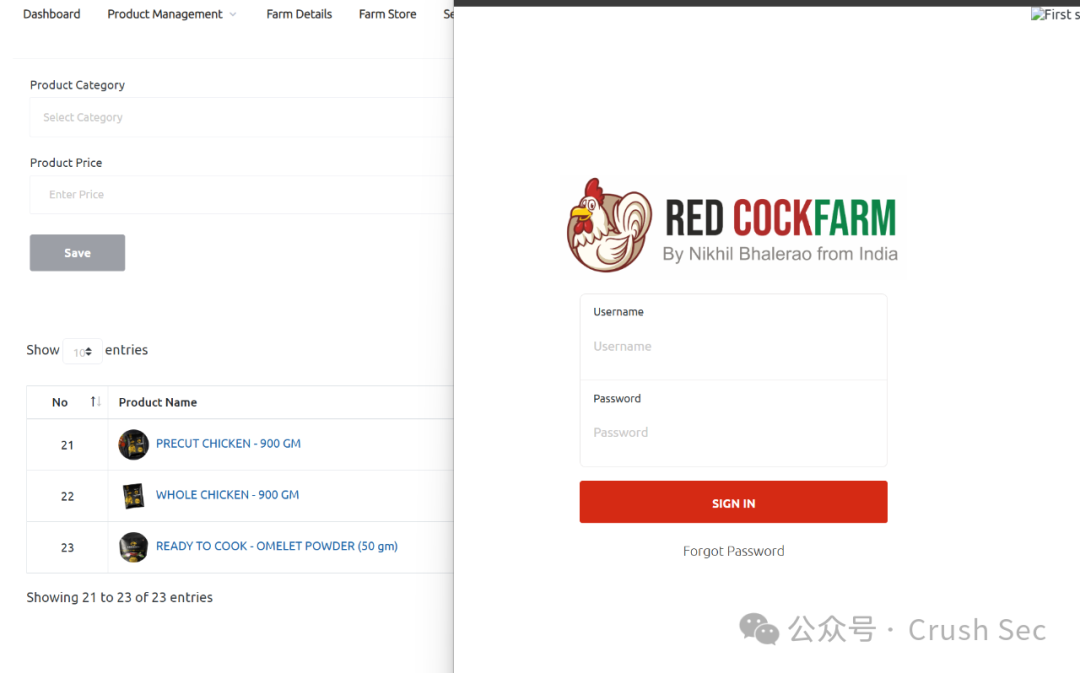抓到删除的api为http://127.0.0.1:8081/Redcock-Farm/farm/product.php?del=32,在无痕浏览器中删除第一个product,等待两秒后重定向到登录页,但是product数量已经从24变为23,删除成功。