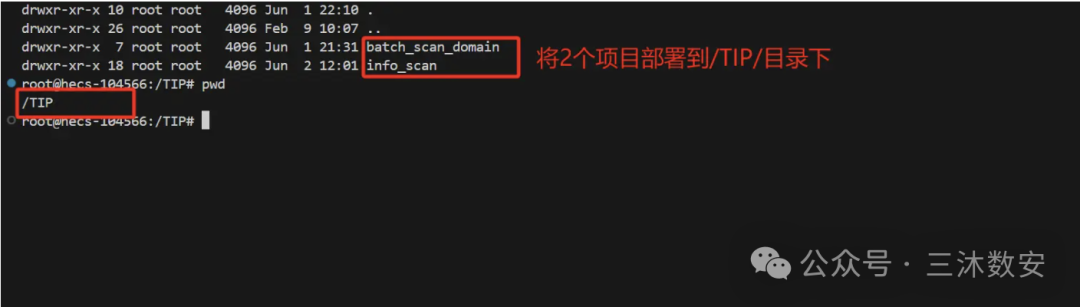 2. 不要修改目录,容易报错,将info_scan和batch_scan_domain部署到服务器的/TIP/目录下,