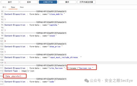 4、把上传的favicon.ico文件修改为favicon.php,从而执行php代码。