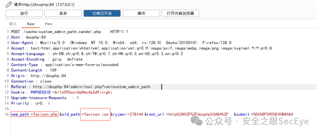 Referer: http://douphp:84/admin/tool.php?rec=custom\_admin\_path