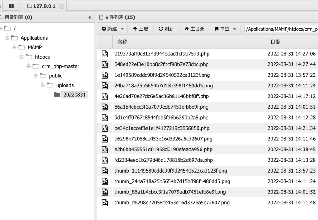 到此,方法体中的move_uploaded_file算是保存完了构建的PHP文件,需要注意的是,这里的命名规则,代码里用了时间的随机数,
