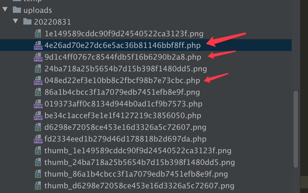 也就是说,前端可以猜到具体的文件夹,但是具体的文件名,需要后期做个碰撞的脚本,才可以获取到。因为是白盒审计,这一步就暂时省略掉了。