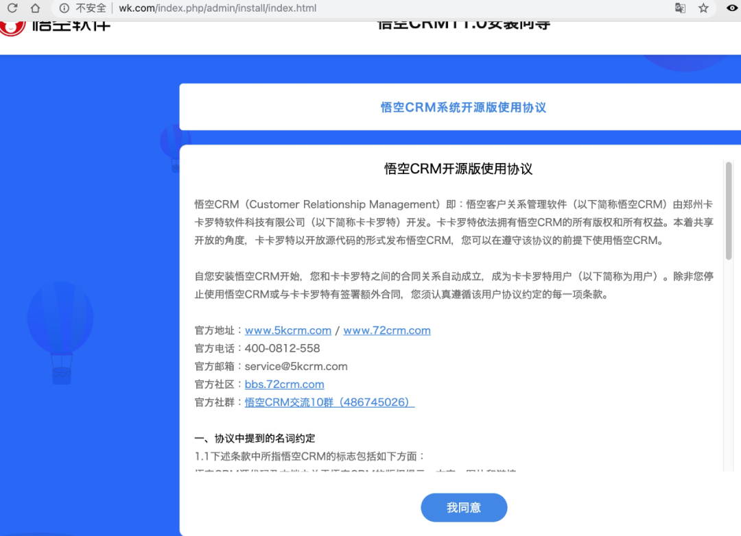 下载路径:https://gitee.com/wukongcrm/crm_php下载完包后,解压放到环境的根目录。访问url: