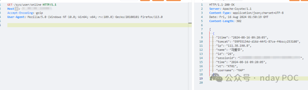 某时空社会化商业ERP系统 user/online 接口存在身份认证绕过漏洞,未授权的攻击者可利用漏洞url获取在线用户sessionid 导致用户信息泄露,并且切换网站session后可直接接管后台,造成信息泄露或恶意破坏,使系统处于极不安全状态。