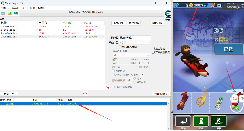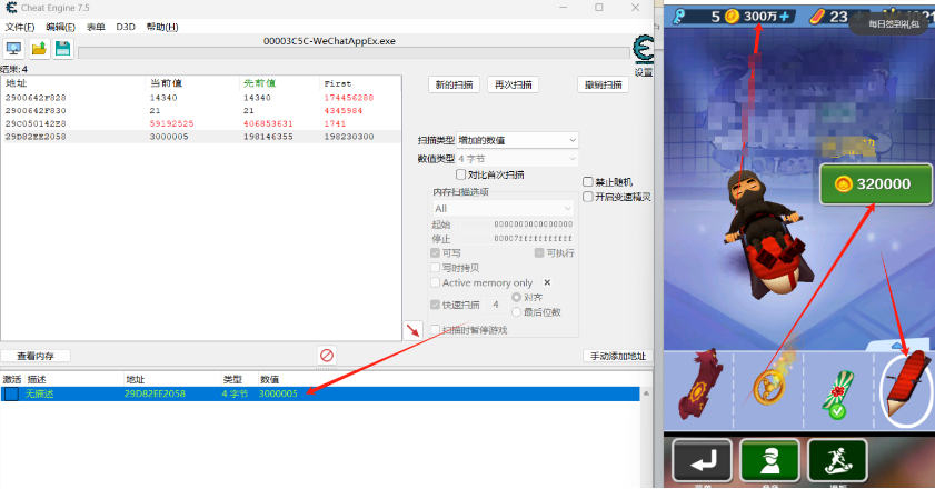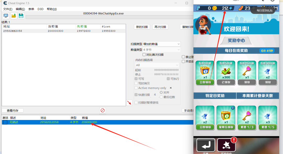 双击,修改,在游戏中在改变一下该值,领取金币或者消费,