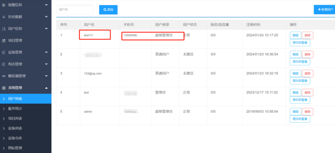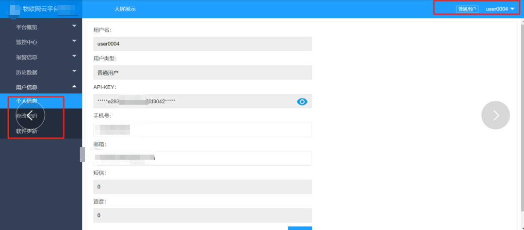 但是我们在登录超级管理员账号的情况下,是可以获取到所有用户的账号密码和user-key信息,那我们先登录一下普通用户看看权限,操作后可以看到登录普通用户之后是没有用户列表这个模块的。