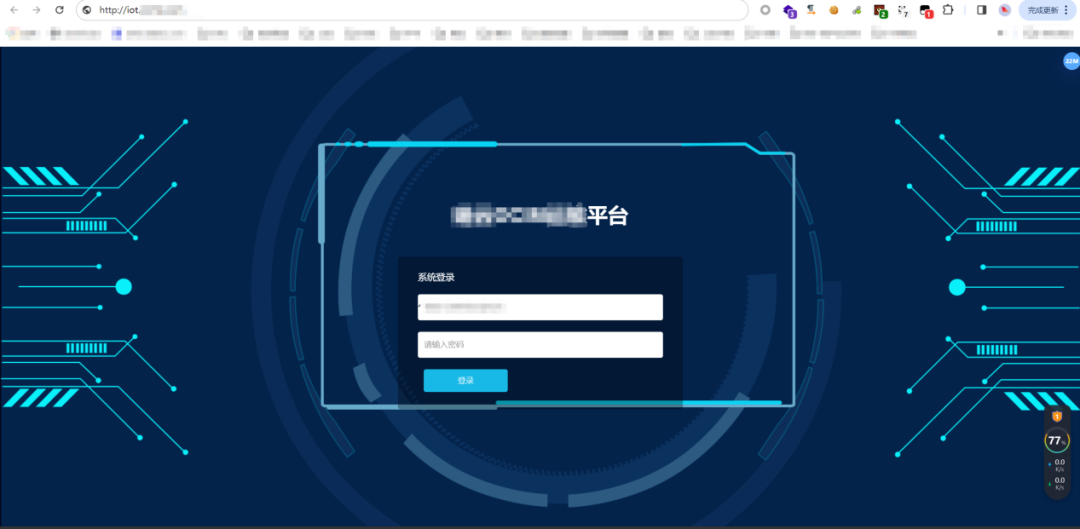 拿到目标信息后,发现其中一目标单位靶标系统是一个IoT物联网管理平台系统。该平台页面有一个登录框,且在账号密码输入框外并无验证码输入项。随后,便通过admin/admin试弱口令,在没有进展后尝试进行“爆破”。依然毫无所获,不仅没有弱口令,目录扫描也没发现啥可用信息,端口只开了80和443,难搞哇!
