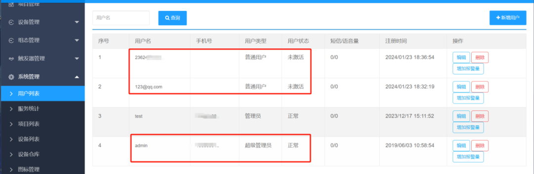 这回有了前提条件user-key,我们试试看能否用这个未激活的用户user-key越权查询“用户列表”信息。现在,我们把查询用户列表数据包中的user-key值替换掉,发包结果显示是可以查询到用户的身份信息,但是只查到了管理员用户,普通未激活用户和超级管理员用户的信息则是没有查到。