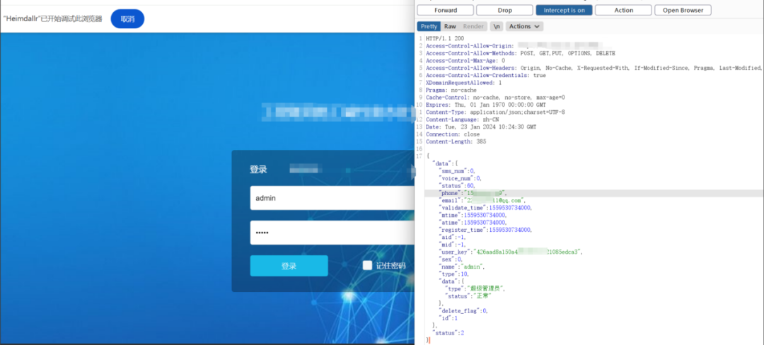 替换user-key发送数据包,查看返回包,并不能确定是否成功,直接拿刚刚注册的超管账号test111登录试试。