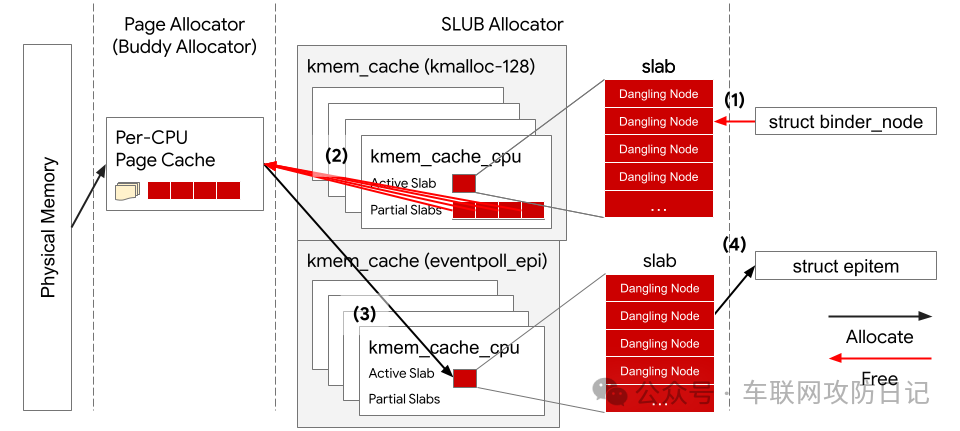 下面的图表显示了如何从先前释放的 binder_node中使用的相同内存区域分配 structepitem。