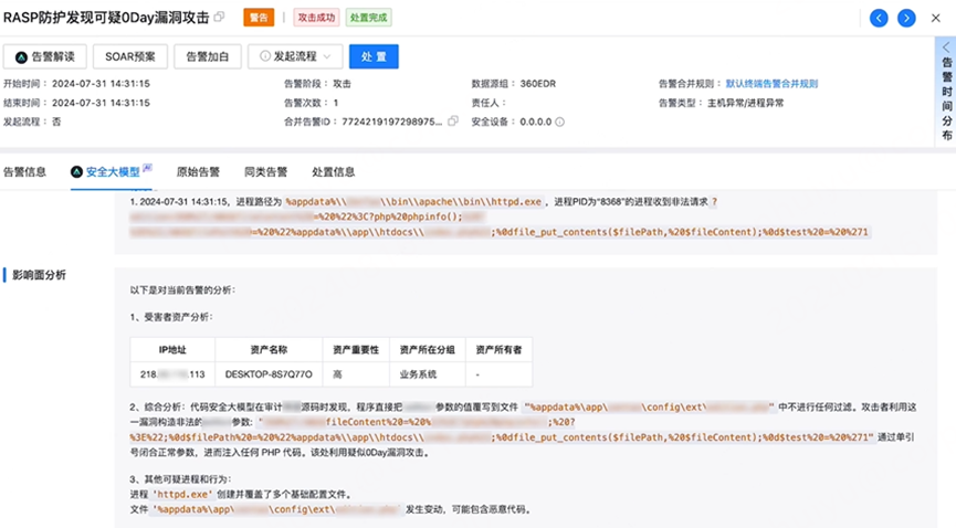 攻防演练实录 | 360安全大模型再狙0day漏洞,助蓝队“上大分”!