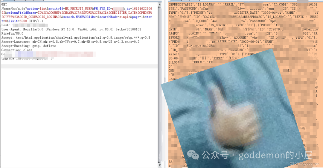 然后结合更改columnFieldNames字段即可获取用户的account,password等等内容,成功获取到用户的大量信息。