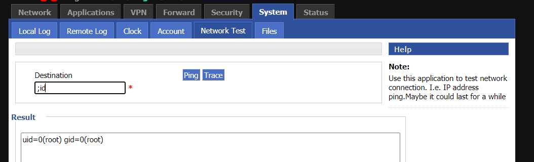 某系统中的网络测试模块中存在命令执行漏洞,可通过命令拼接执行任意命令