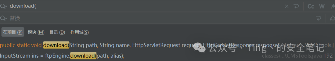 其实一开始是想审一下任意文件下载的,所以全局搜索了一下download 函数 如图