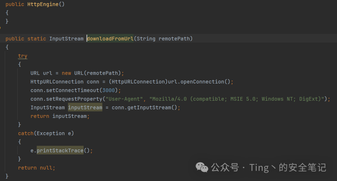 其中调用了InputStream ins = HttpEngine.downloadFromUrl(url);跟进HttpEngine看看