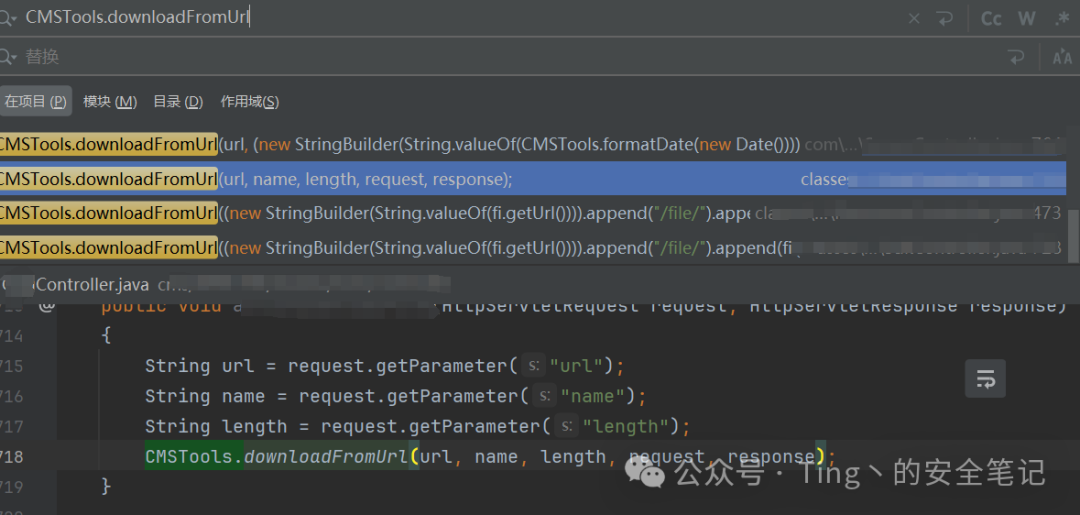 看来是没有任何过滤的 接下来看看哪个位置有用到CMSTools的downloadFromUrl方法