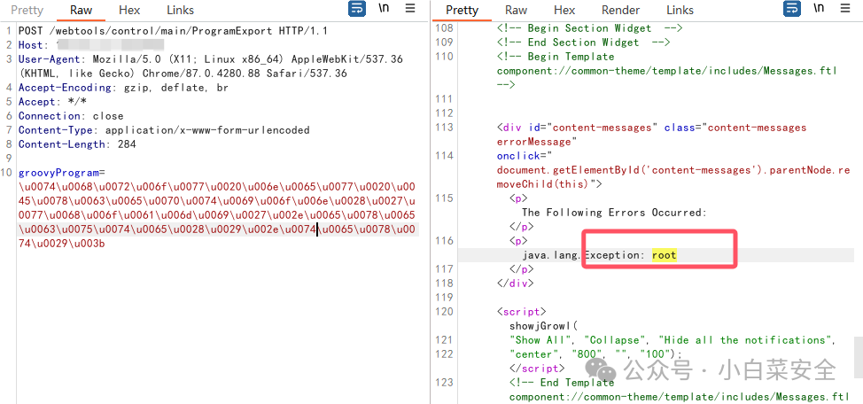 Apache OFBiz 因配置不当存在命令执行漏洞,该漏洞源于org.apache.ofbiz.webapp.control.ControlFilter类对路径,通过/webtools/control/ProgramExport接口的编程导出功能执行任意Groovy代码获取系统权限