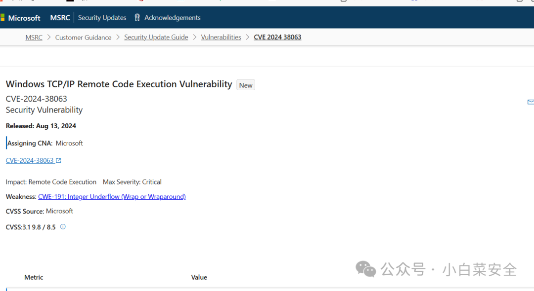 漏洞通告| Windows TCP/IP 远程代码执行漏洞CVE-2024-38063