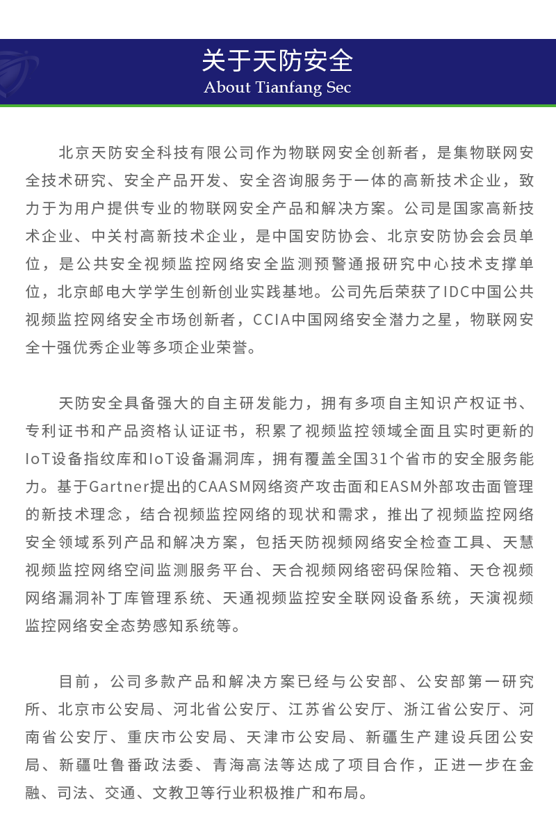 “天防视频网络安全检查工具、“天慧视频监控网络空间安全监测服务平台”