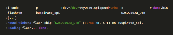 尝试使用 1.8V SPI 转储内存,如数据表中所述,未收到任何响应。然而,使用 3.3V SPI 适配器成功转储。