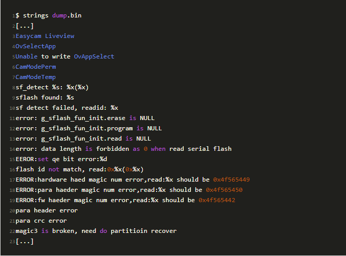 与更新二进制文件不同,固件以明文和字符串的形式存储在文件中,这些字符串确认了这是在 SoC 上运行的代码。然而,二进制转储文件并没有像原样加载到内存中,我们需要在分析代码之前了解二进制格式。
