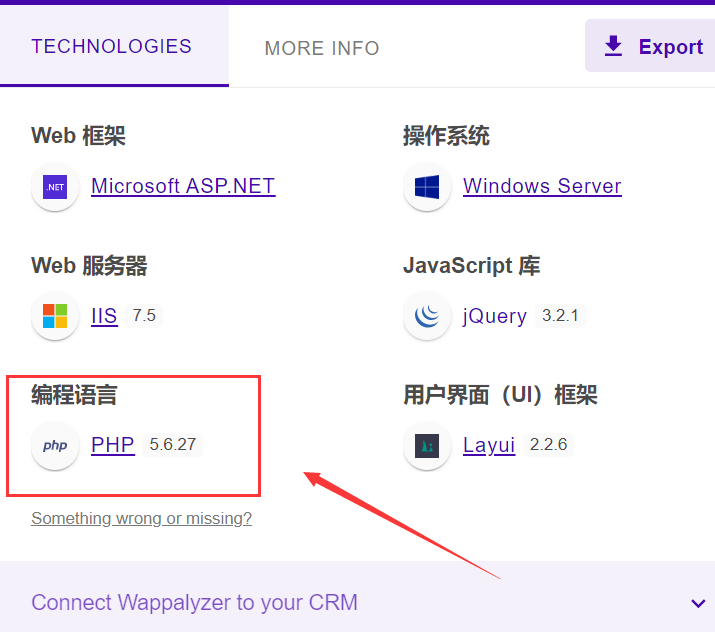 使用wappalyzer插件,可以看到这个站点是使用php搭建的,那么就可以上传php木马上去,然后打一波phpinfo()了