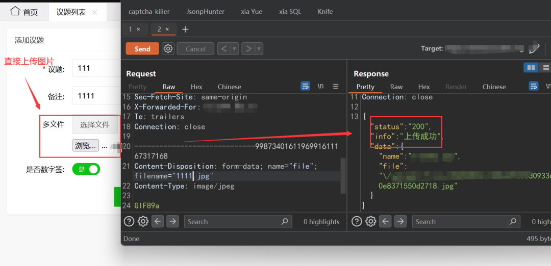 通过几次数据包的抓取,分析发现这个站点的上传文件的方式没有任何的过滤方式,应该可以直接上传恶意文件,然后getshell一波。