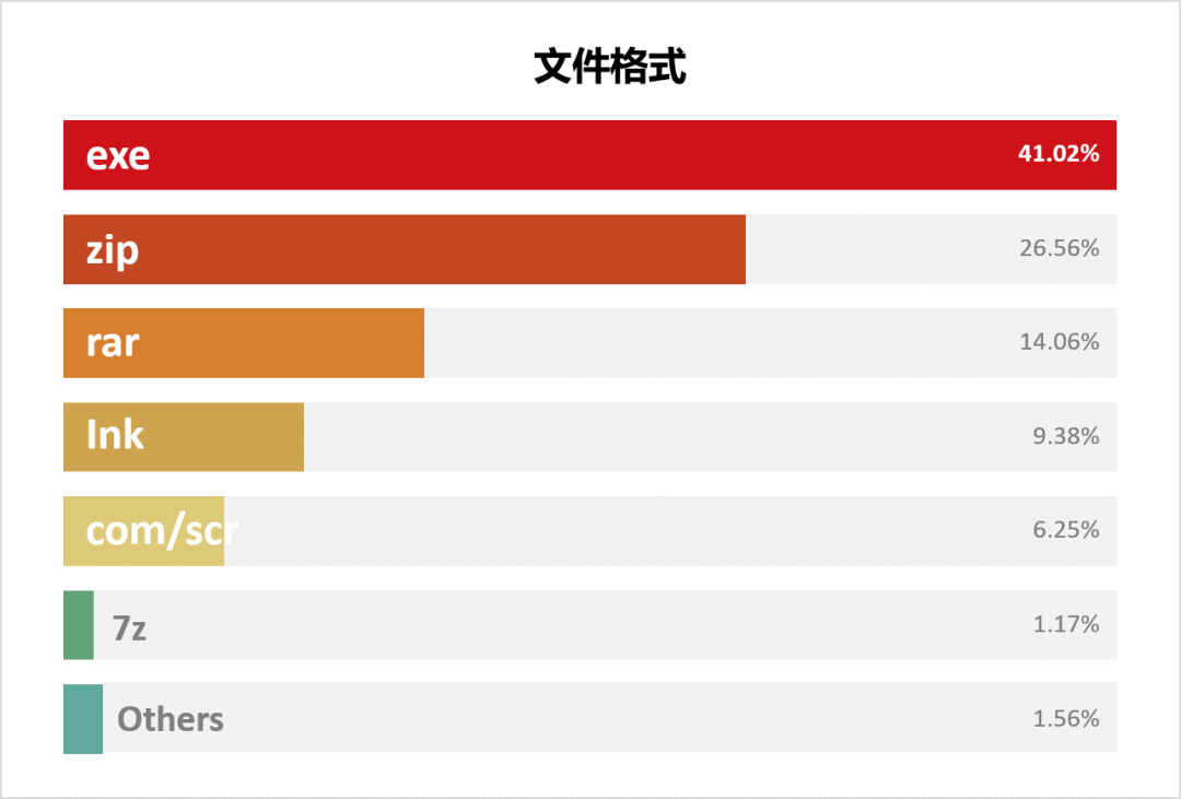 附件格式:压缩文件与可执行文件平分秋色,lnk异军突起