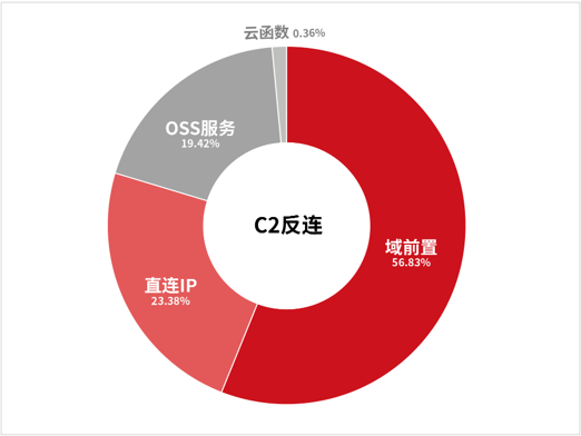 受云函数注册限制的影响,今年云函数的使用几乎销声匿迹。与此同时,作为另一种主要的隐蔽反连的手段,域前置的使用大幅上涨,占比达到了半数以上。(详情可参考《还是熟悉的木马,但主角是域前置