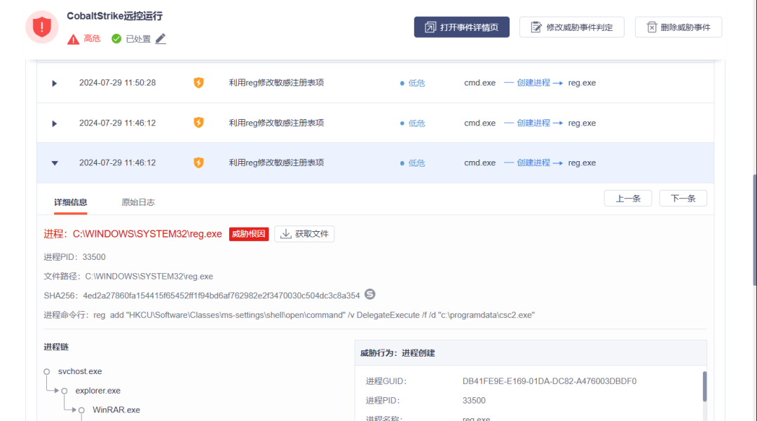 部分恶意行为如下图所示,攻击者通过修改注册表以实现持久化利用。