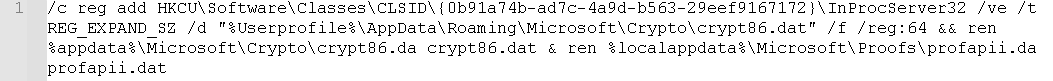 mylink.tmp的功能是将之前释放的文件crypt86.da和profapii.da分别重命名为crypt86.dat和profapii.dat,并劫持系统COM组件0b91a74b-ad7c-4a9d-b563-29eef9167172,利用该COM组件执行crypt86.dat。