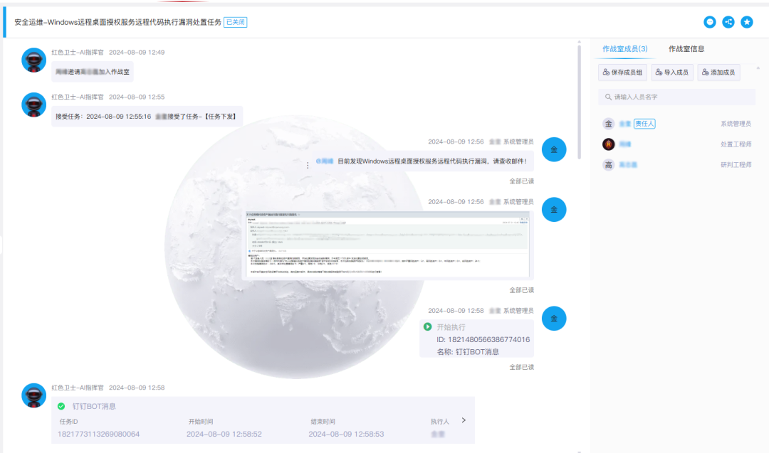 RedOps红鲸智能安全运营平台,分发任务至相关安全处置人员,协同作战高效处置该漏洞。