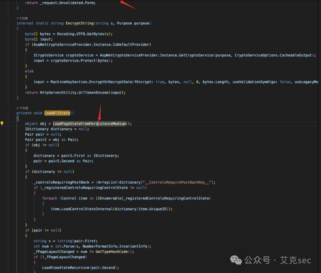 从请求的表单数据中获取隐藏字段 MyViewState 的值,这个值包含了之前保存的页面状态,然后对其反序列化(反序列化内容可控,source_),最终返回反序列化后的状态对象,以供页面恢复其状态