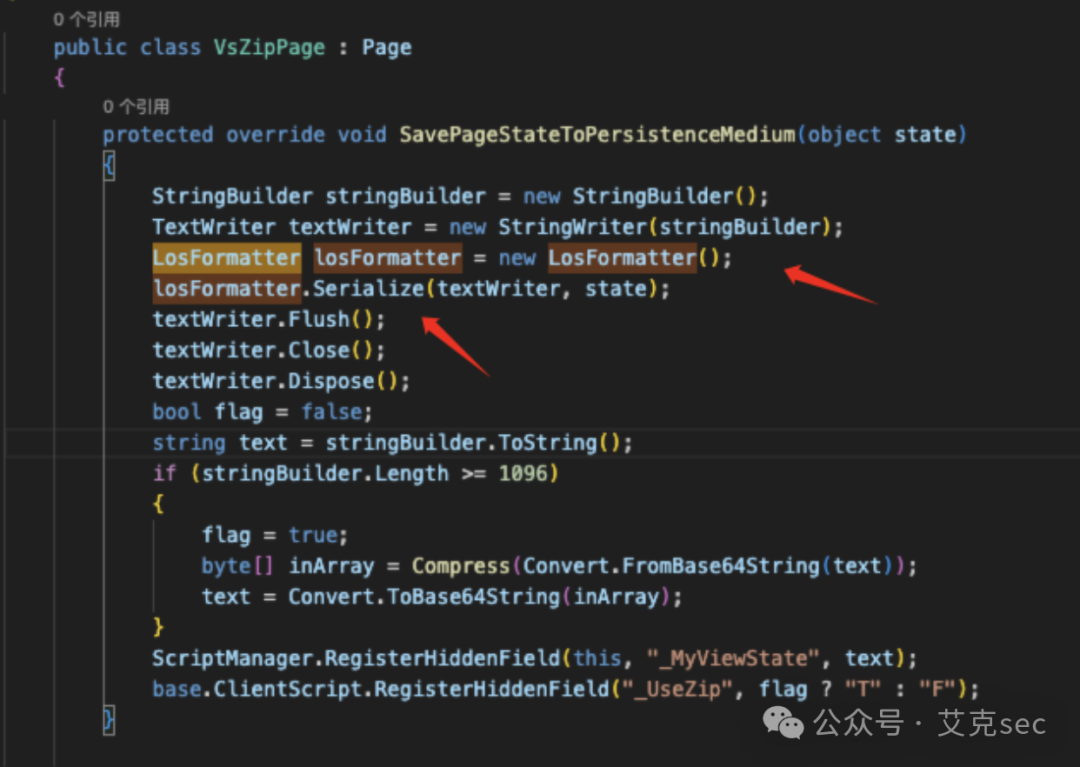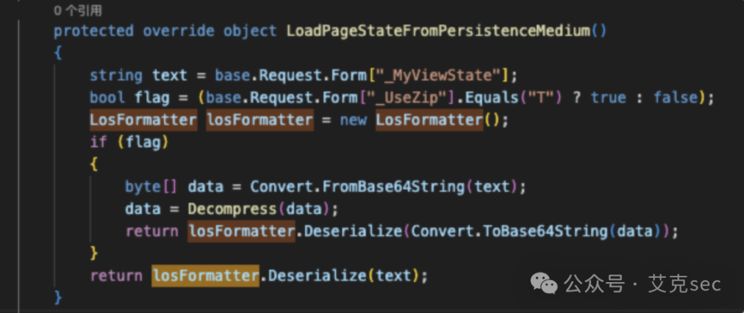 是使用LosFormatter进行序列化与反序列化的,市面上常见的LosFormatter反序列化是由于配置错误禁用 了MAC