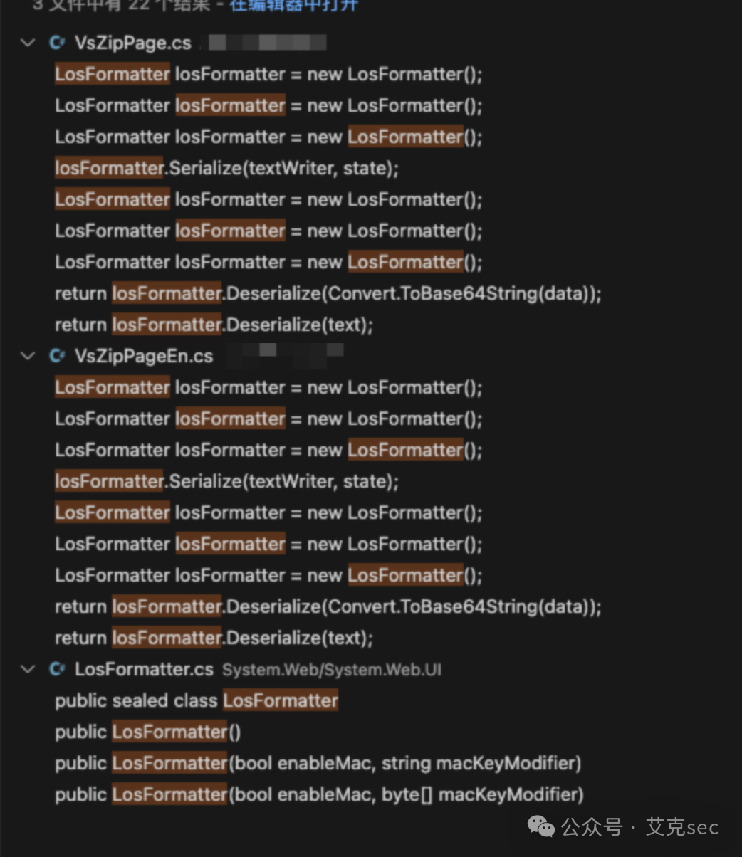 两个类new了LosFormatter对象(由名字可以看到一个为英文版本分析其中一个即可)