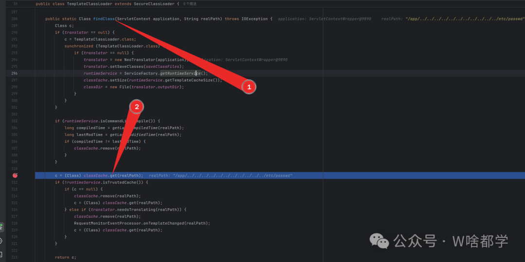 我们跟进去到了page = TemplateClassLoader.newInstance(servletContext, canonicalFile.getPath(), null);