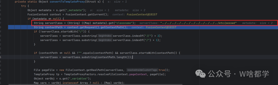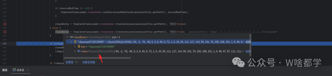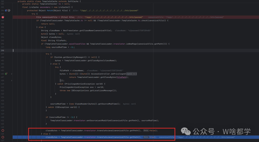 我们可以进去看看可以看一下进入了fetch用于动态加载类的代码,看一下下面圈住的返回的就是获取的/etc/passwd的字节码文件