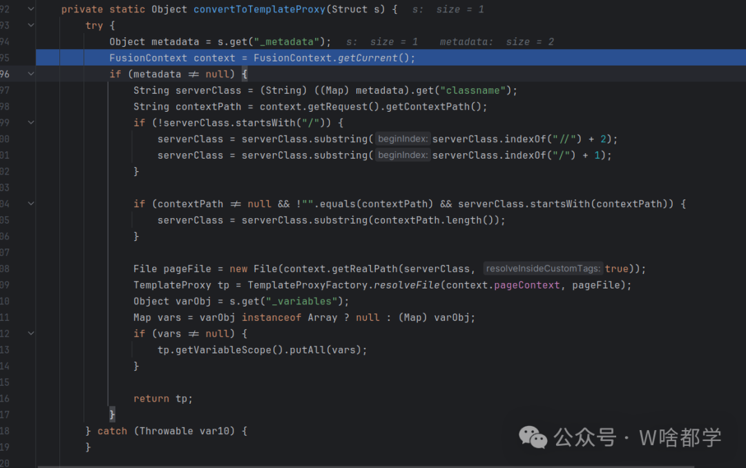 上面的但是处理json数据的,走到如下图的的if判断我们JSON包含 _metadata 字进入convertToTemplateProxy方法里面