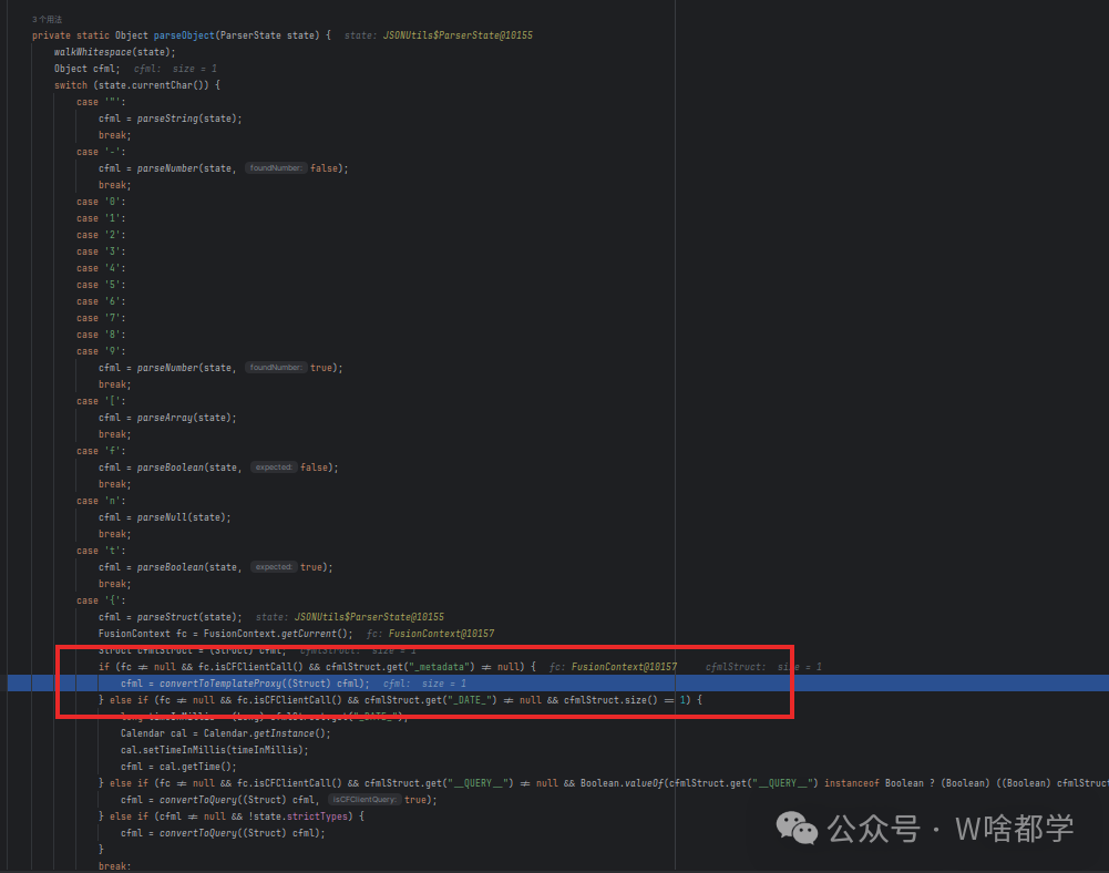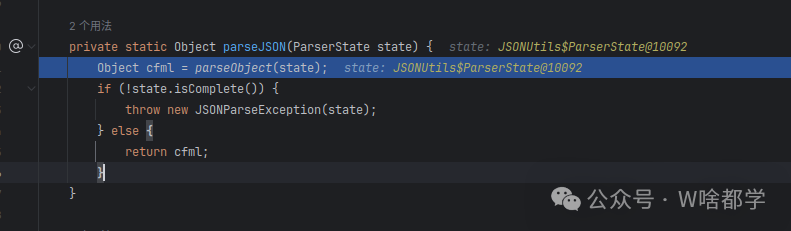 可以看见代码Object cfml = parseObject(state);解析 JSON 对象