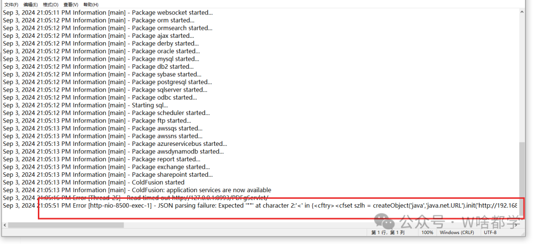 漏洞原理是我们构建CFML数据客户端请求的数据会保存到服务器的coldfusion-out.log,这个目录会记录请求的错误的信息,coldfusion-out.log文件里面就有我们写入的代码了,然后我们使用classname读取执行这个日志文件达到代码执行的效果