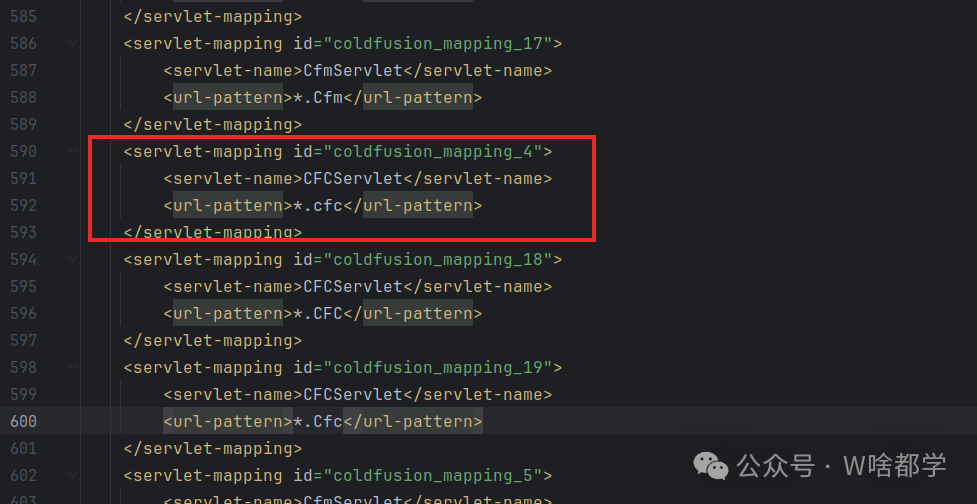 看一下安装路径下的/cfusion/wwwroot/WEB-INF/web.xml