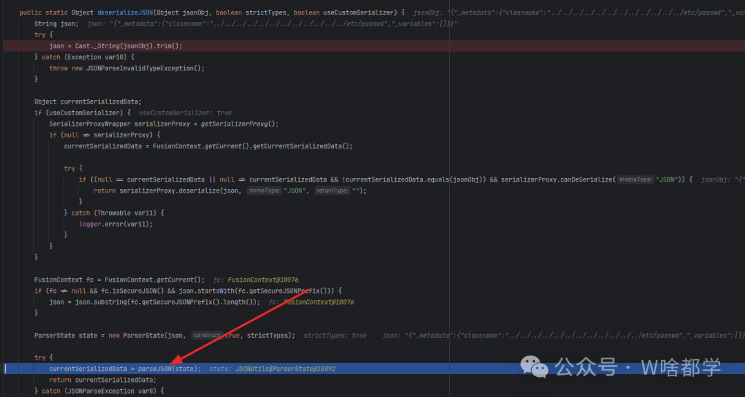 想深入研究我们为什么会这样,我们可以跟进去JSONUtils.deserializeJSON(argss.remove(“_variables”));代码里面的deserializeJSON方法