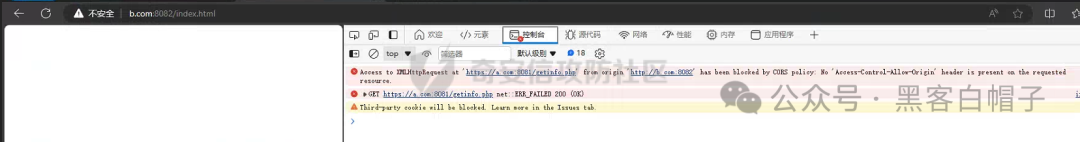 可以发现其实是不能劫持a网站用户信息的。这是由于浏览器同源策略做了限制。实际上也就是浏览器不会把cookie携带过去。