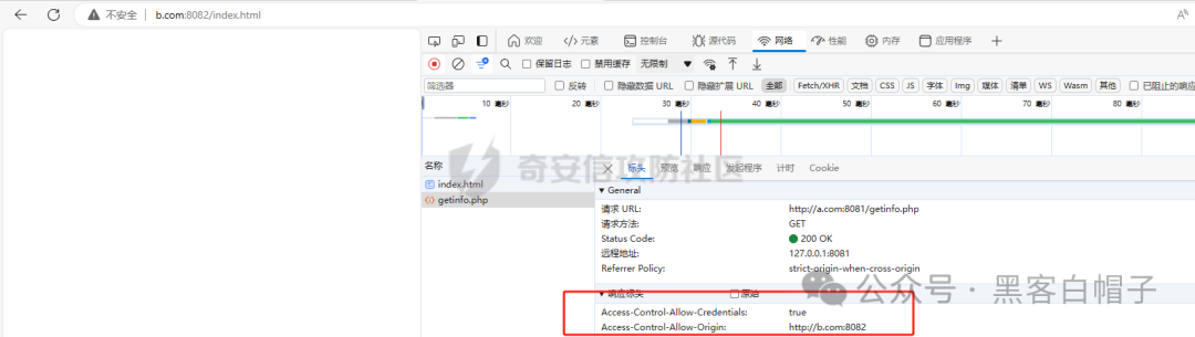 然后查看b.com向getinfo接口发送的http请求。从header来说确实是允许跨域的。