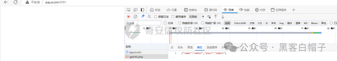 攻击网站b.com代码如下(就是把pay.a.com网站的代码复制过去,但是发现pay.a.com能够成功访问到getinfo接口,但是b.com访问getinfo接口不成功):